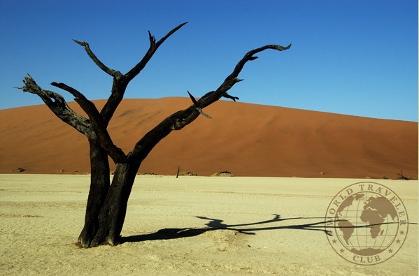 358 km – 6hŚniadanie. Opuszczamy nowoczesne miasto i udajemy się na nieskażone cywilizacją bezdroża, zapierającą dech w piersiach pustynię Namib. Od jej nazwy pochodzi nazwa kraju, w języku nama oznacza "olbrzymi", a w innym tłumaczeniu "miejsce gdzie nic nie ma". Wbrew tłumaczeniu na pustyni znajdziemy mnóstwo atrakcji. Dziś zwiedzimy wspaniały kanion Sesriem, wyschnięte jezioro, skamieniałe drzewa a następnie udamy się na kolację i nocleg do obozu położonego na pustyni – dla chętnych spacer do punktu widokowego na zachód słońca.