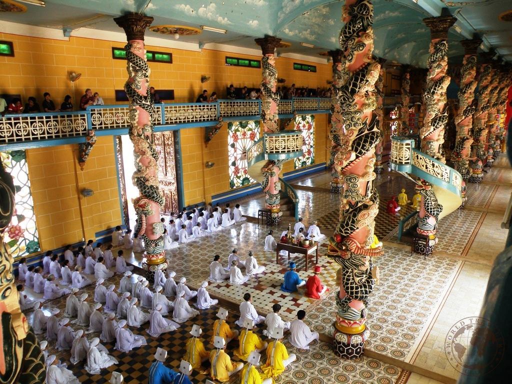 Ś, KŚniadanie. Rano przejazd do Tay Ninh, zwiedzanie świątyni Cao Dai Świętego Jeziora. Jest to świątynia wyznawców kaodaizmu - nowej religii, wyznawanej tylko w Wietnamie, z około milionem wyznawców. Jej architektura jest niezwykła i egzotyczna. Rytuały bazują na fundamentach kilku religii: Katolicyzmu, Hinduizmu, Buddyzmu i Taoizmu. W samo południe zobaczymy specjalną, wyjątkową ceremonię, będącą niczym dynamiczny spektakl pośród niezwykłej muzyki. Po południu zwiedzanie słynnych tuneli Cu Chi, wykorzystywanych przez partyzantów Viet Congu podczas walki. Dzięki ich niezwykłej konstrukcji (była to sieć kanałów) partyzanci potrafili nagle pojawiać się znikąd, a następnie znikać równie szybko zdezorientowanym przeciwnikom. Powrót do miasta, spacer w dzielnicy chińskiej. Następnie czas wolny na zakupy na targu Binh Tay – ostatnia okazja do zrobienia zakupów pamiątek. Kolacja pożegnalna w jednej z restauracji.