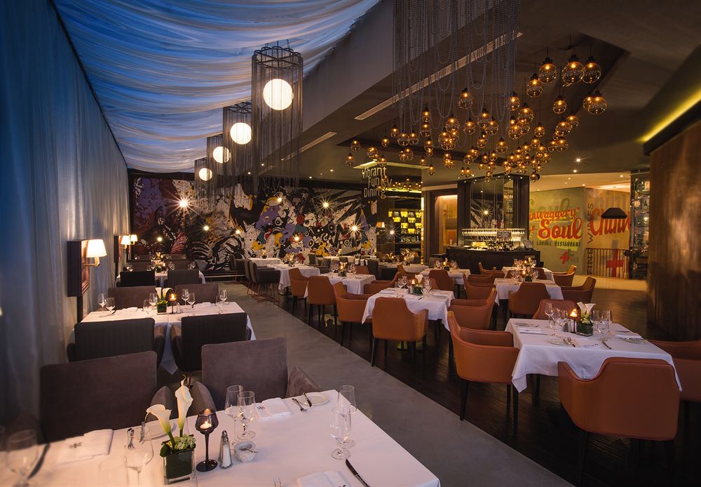 Restauracje: francuska brasserie Le Rivage, The Deck przy basenie, arabska Sehr Al Bahar z wieczorami tematycznymi, w tym tańcami brzucha i fajkami wodnymi, brytyjski pub sportowy Girders z ogrodem, oraz włoska Caffé Via. - Zobacz większą mapę Google