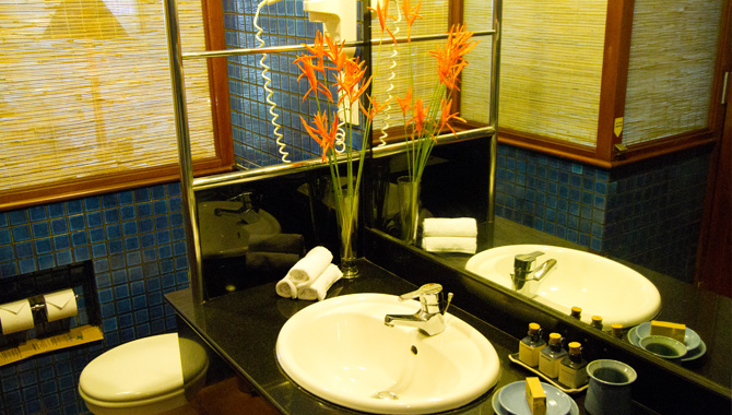 Pokoje: Komfortowe, przestronne, nowocześnie urządzone z 2 łóżkami 1-osobowymi lub 1 łóżkiem 2-osobowym, łazienką (wanna/prysznic) i WC, klimatyzacją, sejfem (wliczony w cenę), TV, radiem, barkiem, kompletem wypoczynkowym, telefonem i balkonem lub tarasem od strony morza.