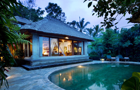 Pokoje: Hotel składa się z 57 willi podzielonych na 6 kategorii. Każda willa jest unikatowa i zaprojektowana w ekskluzywnym stylu. Wszystkie wille wyposażone są w klimatyzację, suszarkę, TV kablową, sejf, minibar, zestaw do parzenia kawy i herbaty, telefon, Wi-Fi. Wille standardowe Ubud Chalet o powierzchni około 80 m2 posiadają również prysznic na zewnątrz. Ponadto, za dopłatą, możliwe jest zakwaterowanie w willi z prywatnym basenem. Na przywitanie goście hotelowi dostają kosz owoców.