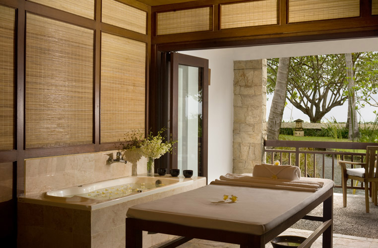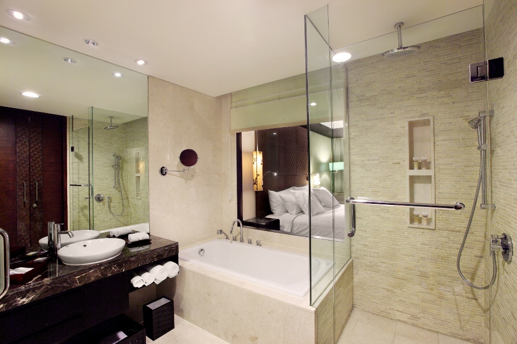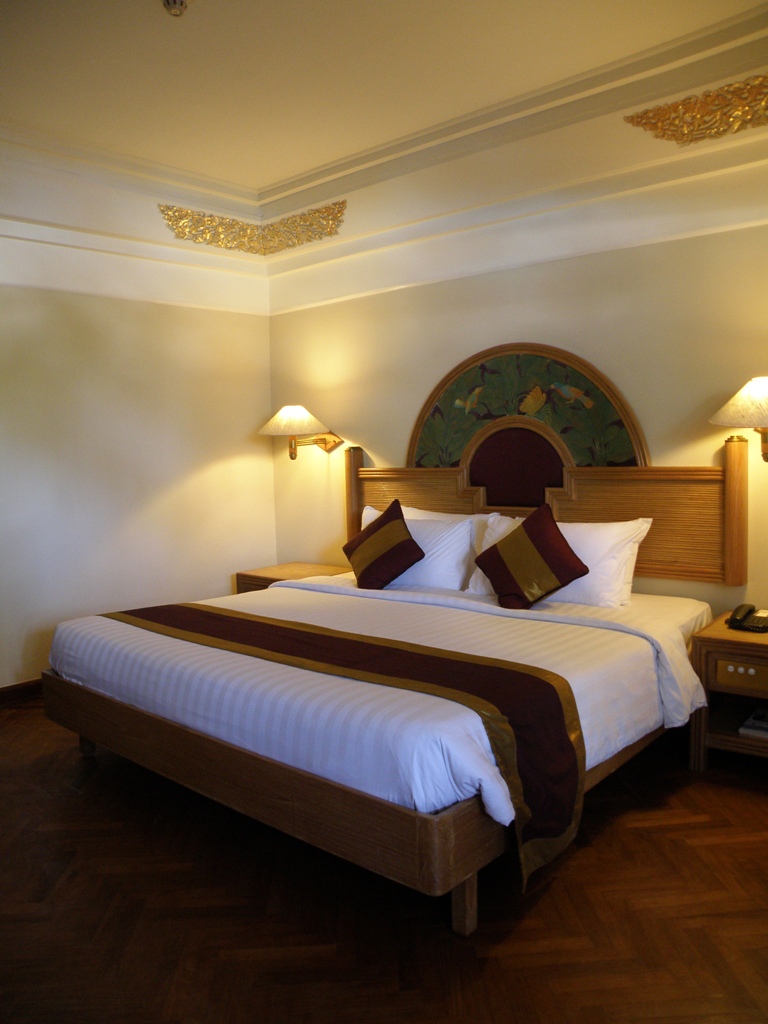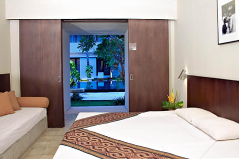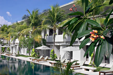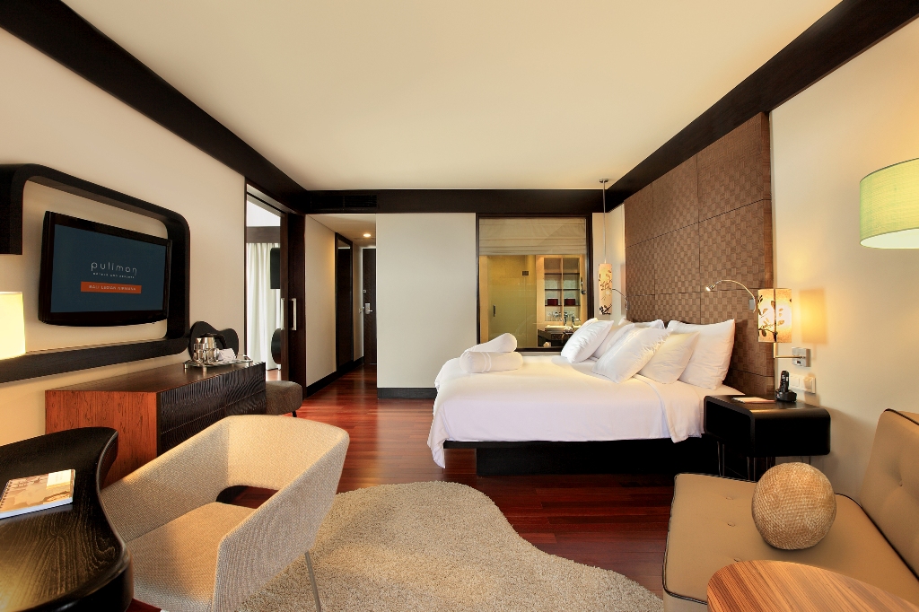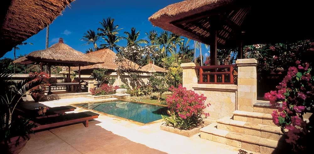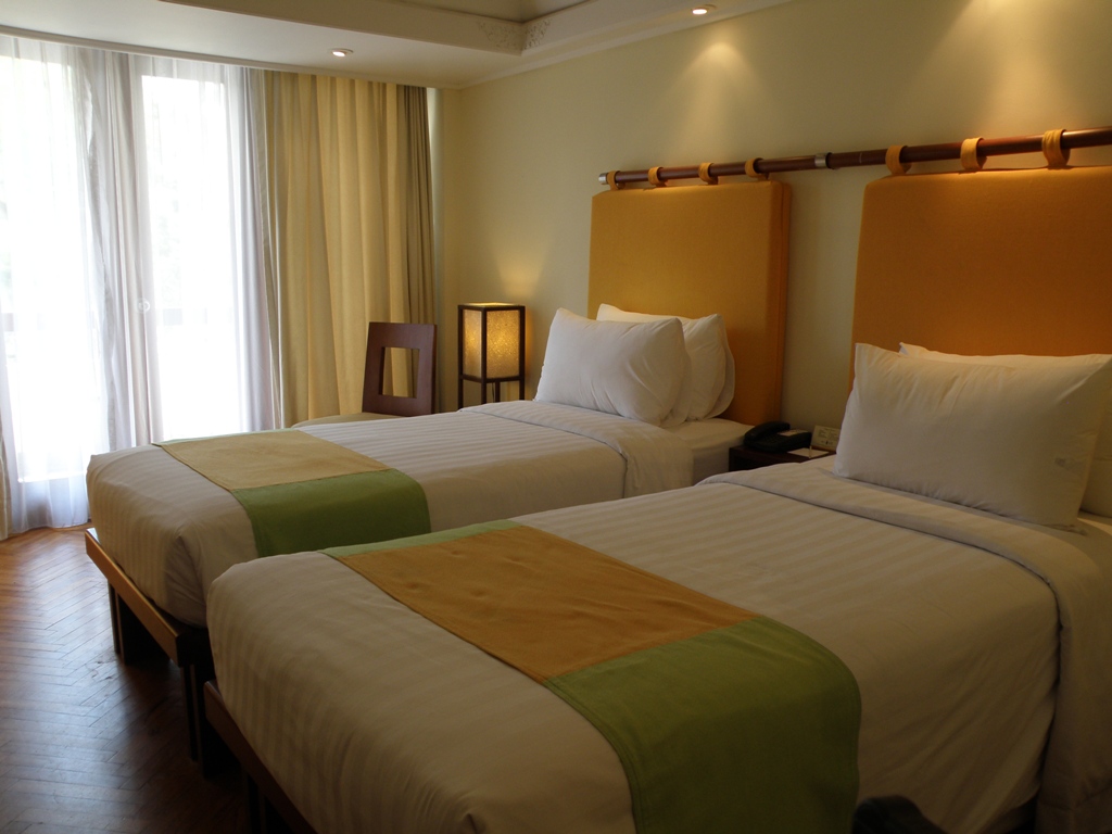 Duch Bali przeniknie Państwa już w momencie przekroczenia progu hotelu, wraz odgłosem gongu świętującego Państwa przybycie.Pokoje: Hotelowe pokoje zostały zaprojektowane specjalnie by relaksować po pełnym zabawy i emocji dniu. Lśniące drewniane podłogi i panele, uzupełnione ciepłymi odcieniami błękitu i zieleni mebli, składają się na przytulne wnętrza. Z okien roztacza się widok na ukryte oczka wodne, rzeźby i piękne ogrody. Pokoje wyposażone są w klimatyzację, ekspres do kawy i herbaty, suszarkę, telewizję satelitarną, telefon oraz sejf. Marmurowa łazienka z osobnym prysznicem i wanną, jest w unikalny sposób oddzielona od sypialni drewnianymi żaluzjami.
