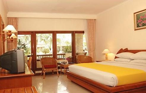 Pokoje: Udekorowane w tradycyjnym balijskim stylu, pięknie urządzone wnętrza oferują pełnię komfortu podczas wypoczynku. Na terenie hotelu znajduje się 228 pokoi z balkonami wyposażonych w klimatyzację, TV, telefon, dostęp do Internetu, sejf, mini bar, radio, suszarkę do włosów, żelazko i deskę do prasowania.