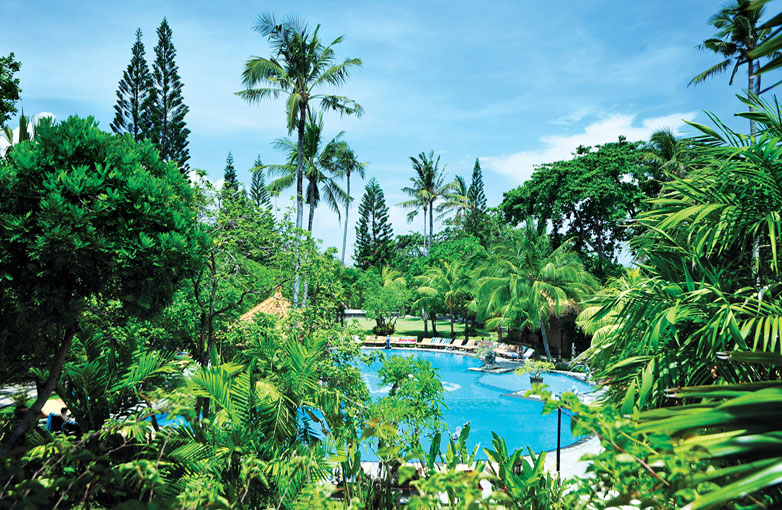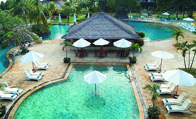 Grand MirageLokalizacja: Hotel mieści się bezpośrednio przy plaży Nusa Dua na wyspie Bali, sprawia wrażenie jakby wyłaniał się wprost z morza. Grand Mirage oddalony jest o 20 minut od lotniska, w pobliżu znajduje się pole golfowe, centrum handlowe, klub Country, oraz centrum konferencyjne Nusa Dua.