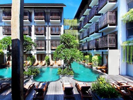 Położenie: Niedawno wybudowany hotel, w eleganckim, nowoczesnym stylu, położony jest w spokojniejszej okolicy znanej, rozrywkowej dzielnicy Kuta, pełnej sklepów, klubów i restauracji, oddzielony ulicą od słynnej Plaży Legian. Droga z lotniska zajmuje około 20 minut.