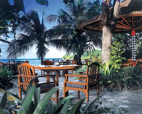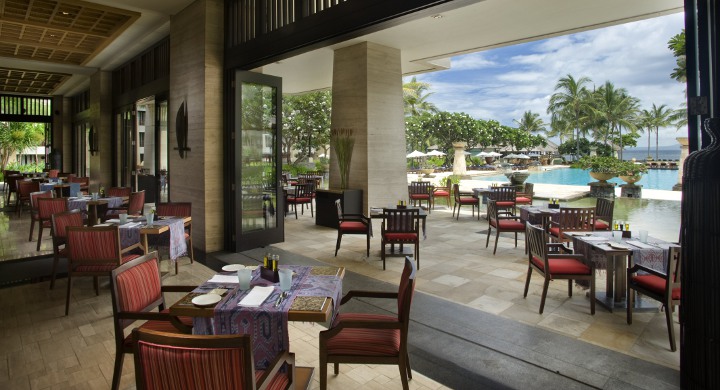 Restauracje: Cempaka – otwarta 24h/dobę, Soka – restauracja przy plaży, Ratna – serwująca lunche i popołudniowe przekąsk, Wratnala – kolacje w formie bufetu towarzyszące pokazom na scenie (otwarta tylko w dni pokazów), 3 bary: Cempaka Bar, Rijasa Lobby Bar oraz bar przy basenie – Sriwedari.