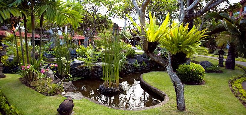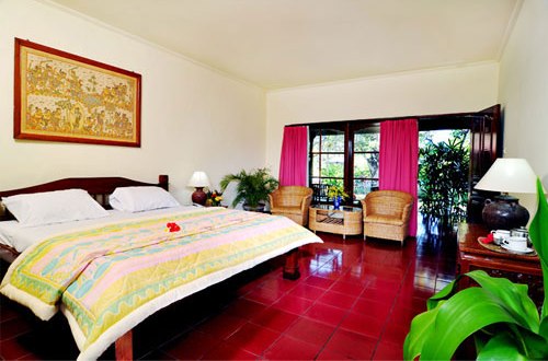 Pokoje: Hotel oferuje zakwaterowanie w czterech rodzajach pokoi prezentujących połączenie tradycyjnego balijskiego stylu i architektury współczesnej. Pokoje standardowe o powierzchni 34m2, w budynku głównym, wyposażono w indywidualnie sterowaną klimatyzację, telewizję satelitarną, telefon, lodówkę/mini-bar, ekspres do kawy i herbaty, sejf, suszarkę i pantofle. Z prywatnego tarasu lub balkonu roztacza się widok na ogrody. Deluxe Bungalow Room – przestronne pokoje w bungalowach, otoczonych tropikalną roślinnością, zdobionych drewnianymi rzeźbami (w jednym bungalowie 8 osobnych pokoi (4 pokoje na parterze i 4 pokoje na piętrze), każdy o powierzchni 36m2 i standardowym wyposażeniu. Royal Room o powierzchni 46m² z prywatnymi balkonami lub tarasami z widokiem na ogród i staw. Poza standardowym wyposażeniem, przestronna łazienka z dużą wanną i osobnym prysznicem. Na Bungalow Suite o powierzchni 44m² składają się dwie przestronne sypialnie oraz salon, urządzone w tradycyjnym stylu wyspy. Każdy Bungalow Suite ma prywatny balkon z widokiem na ocean lub ogród.