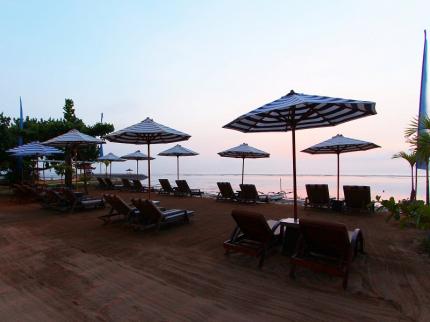 Położenie: W Sanur, przy szerokiej, piaszczystej plaży, w cieniu palm kokosowych. Od lotniska dzieli 25 minut, od centrum Denpasar 15 minut jazdy. Hotel położony jest bardzo blisko restauracji, barów, sklepów, salonów masażu w centrum Sanur, od których oddzielony jest rozległym ogrodem, gwarantującym spokojny wypoczynek.