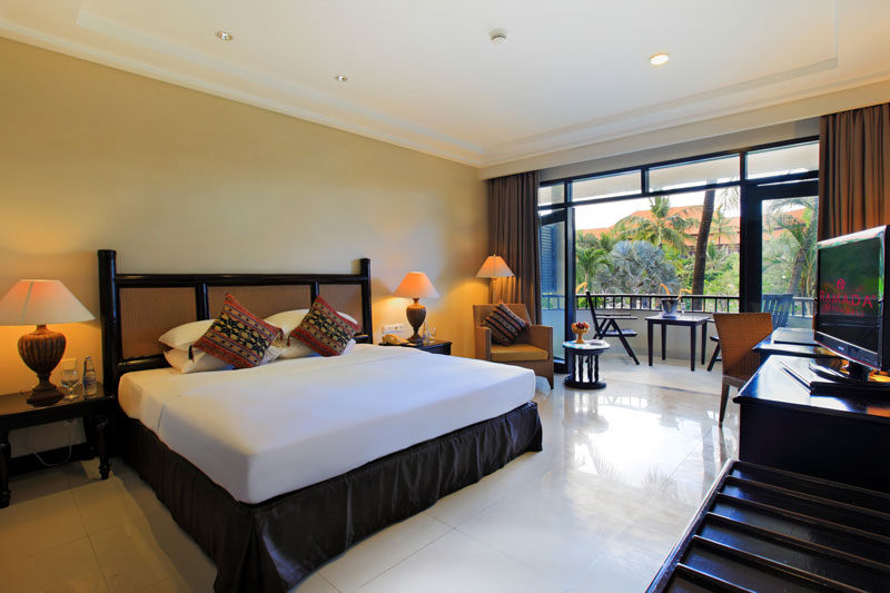 Pokoje: 162 pokoje i apartamenty w tradycyjnym balijskim stylu mieszczą się w 3-piętrowych budynkach. Pokoje standardowe (41 m²), z widokiem na okolice, z wyposażeniem: zestaw do parzenia kawy i herbaty, sejf, klimatyzacja, telefon, telewizor (kanały satelitarne), minibar, WiFi. W łazience prysznic, suszarka do włosów, szlafrok, kapcie, toaleta. Za dopłatą możliwość zakwaterowania w pokojach z widokiem na ogród i basen, lub w przestronnych willach z jedną (81 m²) lub dwoma (103 m²) sypialniami.