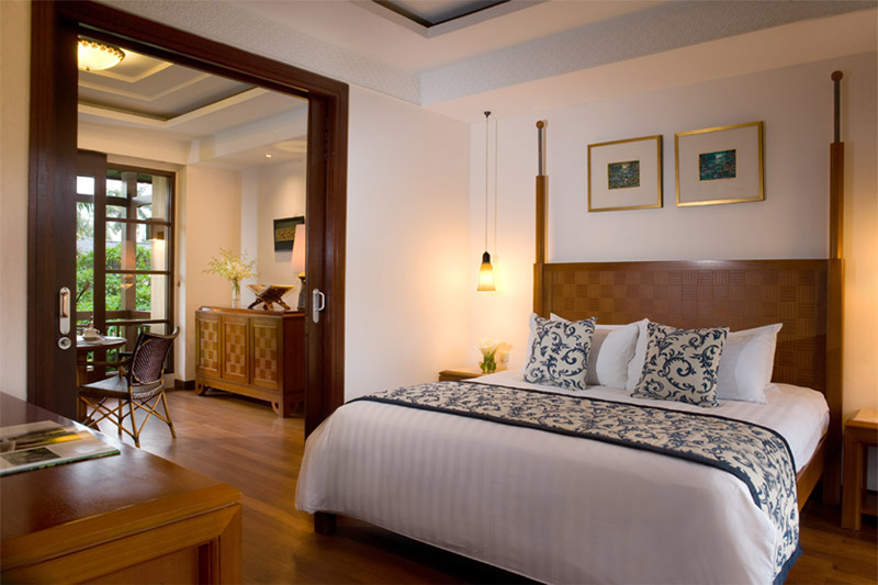 Pokoje: 364 przestronne, wysokiej klasy pokoje, wszystkie z prywatnymi balkonami lub tarasami, z widokiem na piękne tropikalne ogrody. Wejście do każdego pokoju ozdobione jest unikalnymi rzeźbami, w środku znajduje się duża marmurowa łazienka z wanną i prysznicem oraz toaletka z umywalką, w samych pokojach na podłodze z drzewa tekowego umieszczono ratanowe meble, ozdobione egzotycznymi tkaninami. Wszystkie pokoje są klimatyzowane, posiadają prywatne sejfy, telewizory LCD z dużym wyborem kanałów satelitarnych, dostęp do internetu (WIFI, płatny dodatkowo), telefony i mini bar, suszarkę oraz zestaw do parzenia i herbaty.