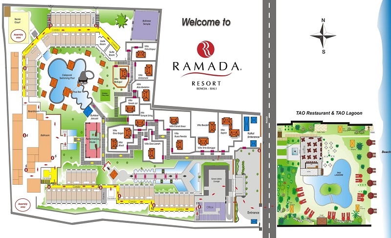 Pokoje: 42 pokoje, piękne udekorowane w tradycyjnym, indonezyjskim stylu, wyposażone w mini-bar, telefon, telewizję satelitarną, sejf, indywidualną klimatyzację.Do dyspozycji gości: Restauracja Flamboyant serwująca dania międzynarodowe i egzotyczne, 3 bary, baseny z wodospadem, spa (m.in. masaże, aromaterapia, zabiegi kosmetyczne), salon piękności, sklepy, 24-godzinny room service.Ramada BenoaPołożenie: Hotel położony na północnym krańcu Tanjung Benoa, w spokojnej miejscowości wypoczynkowej Nusa Dua. Dojście do szerokiej, piaszczystej plaży przez ulicę. Kilka razy dziennie do centrum handlowego Bali Collection kursuje bezpłatny autobus. Transfer na lotnisko zajmie około 20 minut.