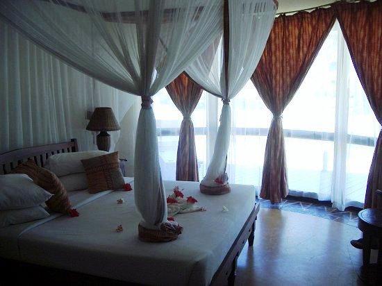 Pokoje: Hotel posiada łącznie 154 pokoje w kilku kategoriach rozmieszczone na dwóch piętrach. Przestronne pokoje Deluxe Garden Ocean View zajmują powierzchnię ok. 55m². Wykończone są w tradycyjnym afrykańskim stylu. Pokoje posiadają taras albo balkon z widokiem na ogród i częściowym widokiem na ocean. Wydzielony jest salon obejmujący sofę oraz stół. Łazienka posiada prysznic deszczowy, suszarkę do włosów. Pokoje są wyposażone w: klimatyzację, moskitierę, TV z SAT, minibar, sejf, ekspres do kawy/ herbaty oraz dostęp do internetu wifi.