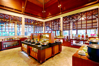 Do dyspozycji gości: restauracje – Kebun Anggrek, serwująca dania kuchni indonezyjskiej i międzynarodowej, Bawang Putih Grill – steki i owoce morza, bar przy plaży Sunset Bar, elegancka Beach Berugak, organizująca również prywatne kolacje przy świecach.